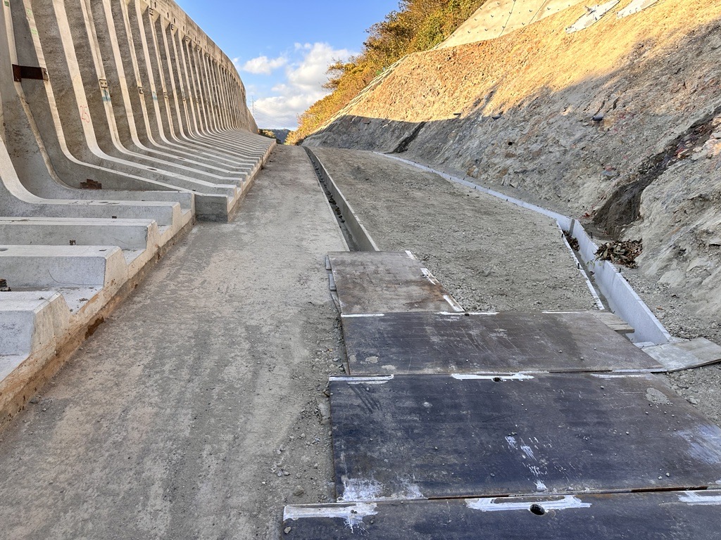 山陽自動車道 尾道JCTのり面災害復旧工事 の内、仮設防護柵工およびL型擁壁撤去工